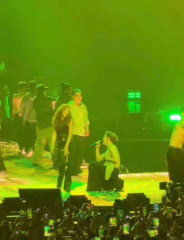 从社交平台上上传的片段中可以看出,陈凯琳在距离舞台比较近的地方时,王嘉尔亲自走到她面前温柔蹲下,并深情的说,感谢你我的公主今天来到现场。