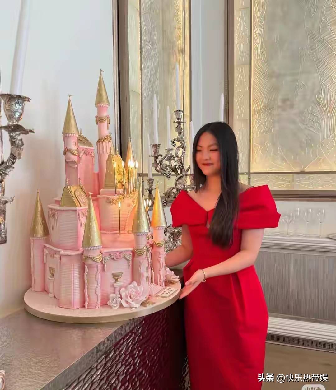 让人大开眼界的是王岳伦送给女儿的生日蛋糕,粉红色城堡蛋糕好几层,王诗龄站在旁边还没有蛋糕高呢。