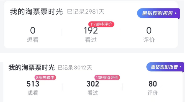 据淘票票数据显示,影迷西西八年来累计在院线看过302部电影,平均每年38部,由于在北京上学、工作,每年的北影节也不会缺席,朝阳海淀连轴转是常有的事,称得上是铁杆影迷。