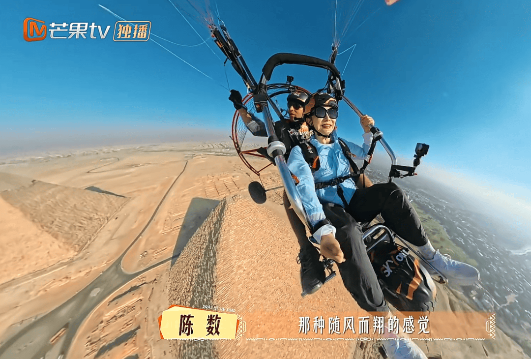 勇于尝试,在金字塔上空,玩起滑翔机。