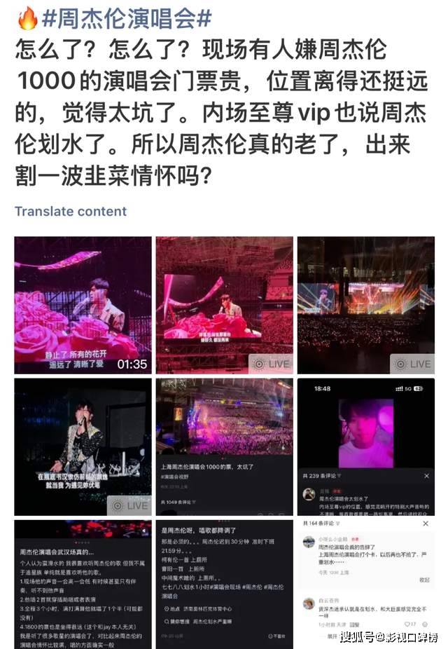 武汉场观众记录显示3小时演出中周杰伦实际演唱不足90分钟,中间都是他的小弟在混时长,比如刘耕宏跳操;济南站被曝演唱会迟到30分钟却准时下班;上海场提前至21:30结束引发不满。尽管粉丝强调情怀无价,但越来越多能买到票的路人观众开始质疑演出性价比。1800元门票只能听到模糊音响,完全看不到他对音乐事业的敬畏心。与此同时,网上开挖周杰伦其实根本不喜欢中国风,文化造诣很低,真正懂国风的从来都是方文山。