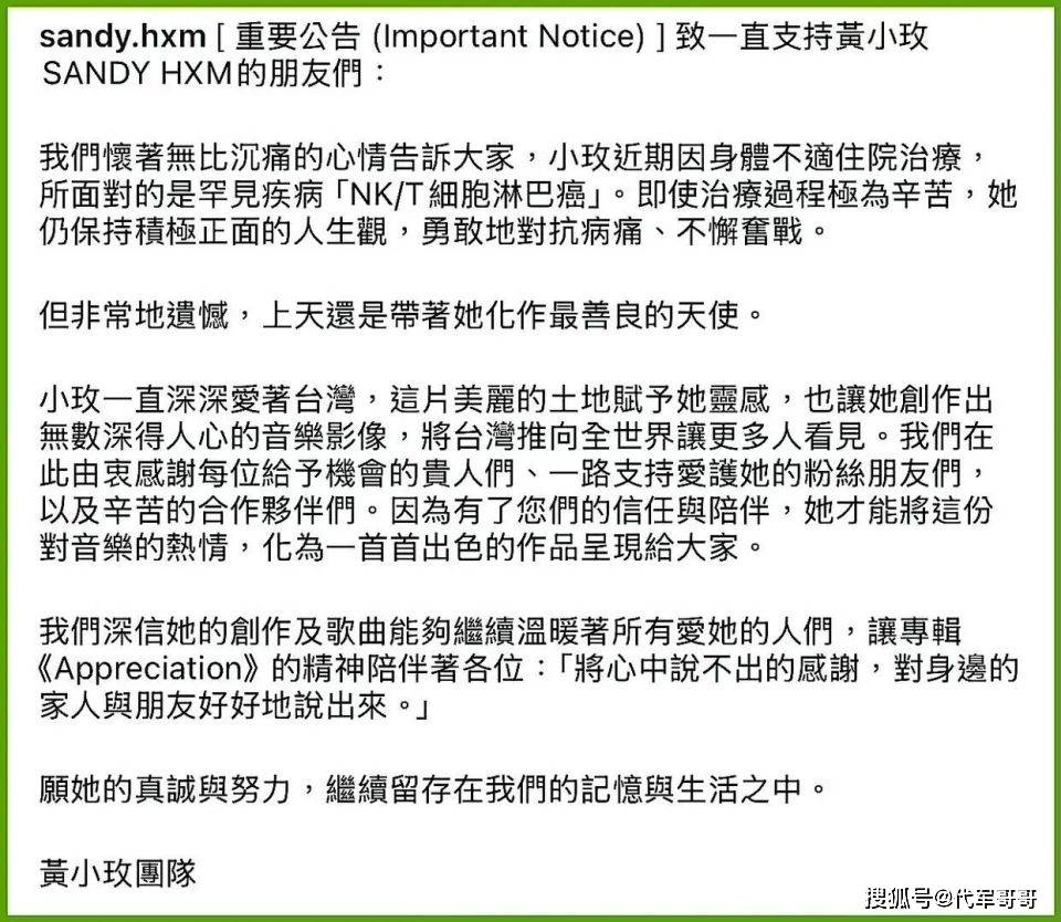 黄小玫的离世在华语乐坛掀起巨浪。制作人韩贤光在追悼会上哽咽追忆其创作执念,无数网友重听《Appreciation》专辑泪洒评论区。团队以她的代表作《晚安曲》改编的告别曲,将 “带着你宽大的心,照亮每个地方” 的歌词化作跨越生死的约定,成为她留给世界的最后馈赠。