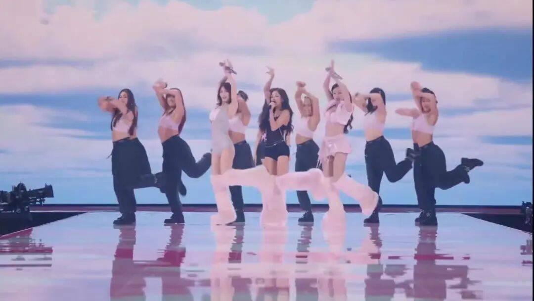 这次舞台分量不轻——TWICE受邀在中场秀的PINK环节登场,该环节主打年轻活力的彩色风格,与TWICE自带的“酷甜魅力”完美契合。舞台由曾与Billie Eilish合作过的国际顶级团队Moment Factory操刀,全景式舞台设计结合TWICE招牌的高强度齐舞,视觉效果拉满。更让粉丝骄傲的是,在如此国际级的盛大场合,四位成员依然坚持全开麦表演,唱跳实力稳得没话说。