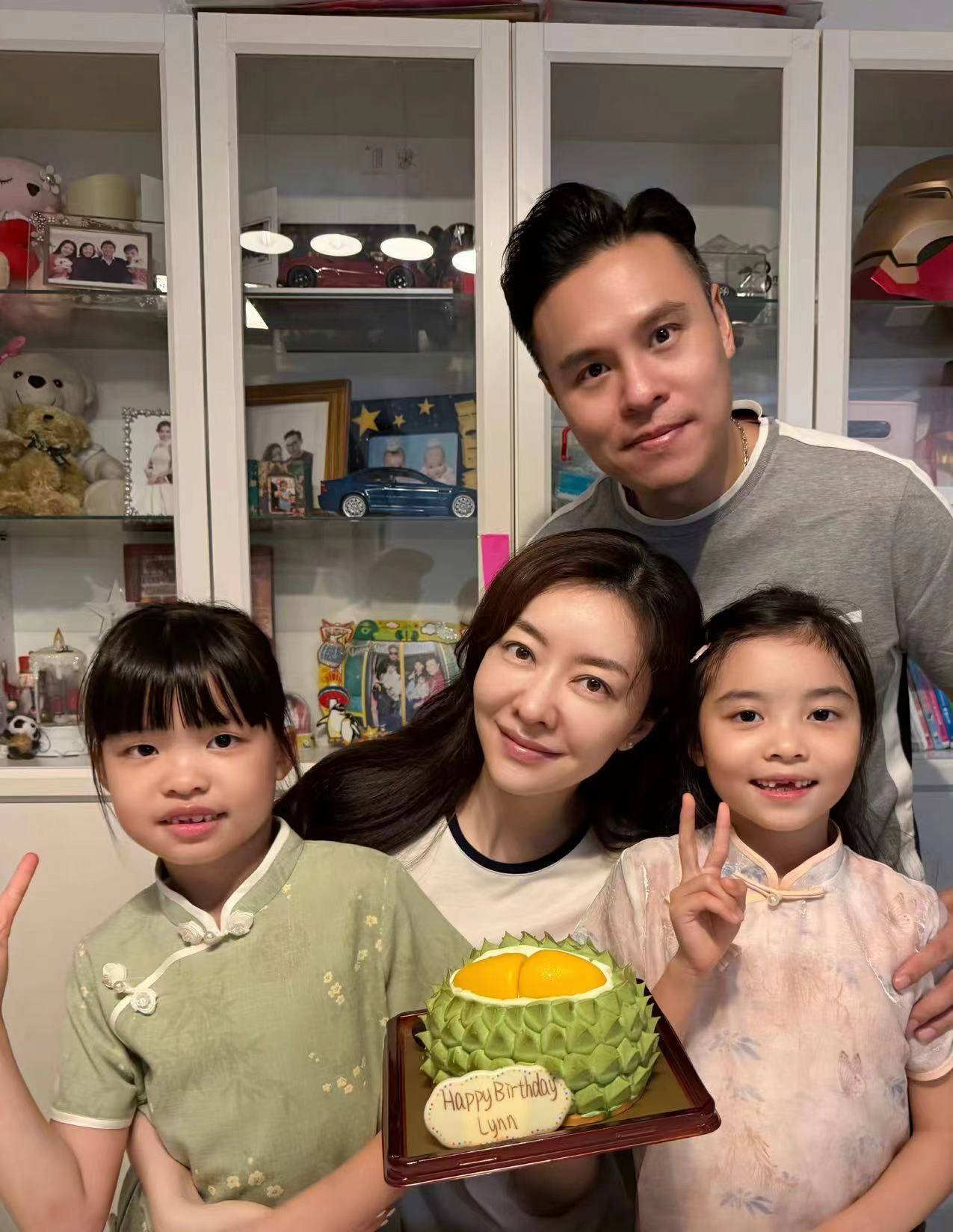 2018年4月25日,熊黛林和丈夫郭可颂及双胞胎女儿,一家四口合影曝光。
