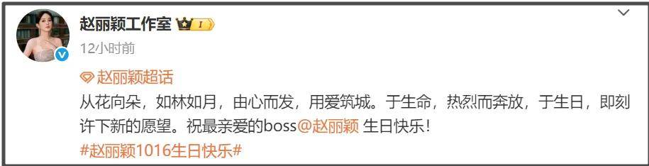 不光是好闺蜜周放,赵丽颖工作室的生日发文同样微妙。