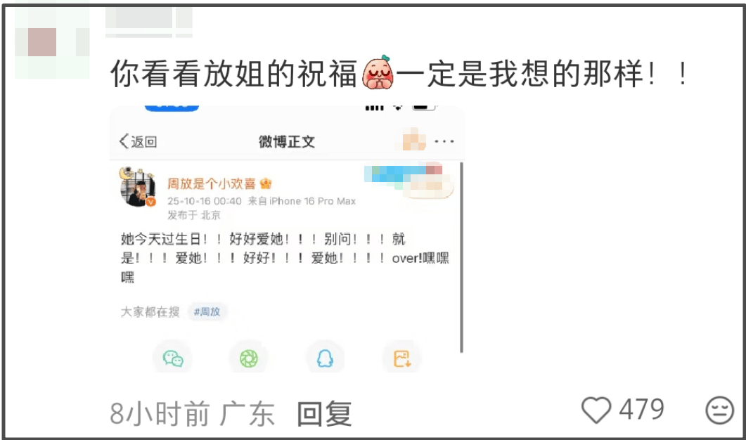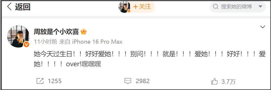 好一个与众不同的生日祝福,特别是那句“好好爱她”,不止一位网友觉得,越看越像周放对着某个人喊话。