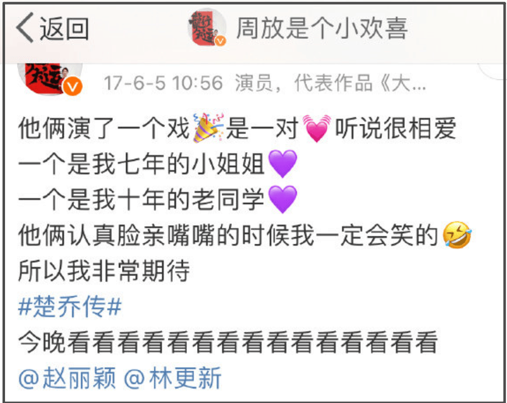 把周放近三年给赵丽颖的生日祝福放在一起看,一眼就能看出差别。
