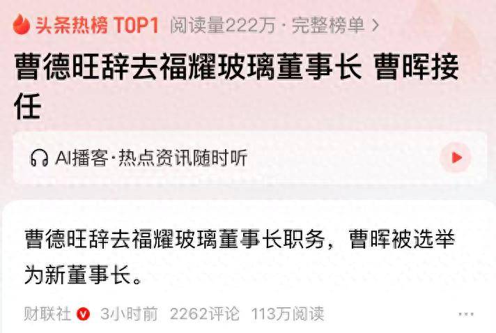 原创 曹德旺辞去董事长一职,自曝原因,大儿子履历被扒,女婿能力也强