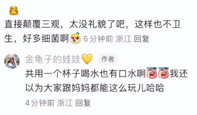 有网友对此提出质疑,王逸宸竟然狡辩说,共用一个杯子也有口水,她以为大家都跟妈妈这么玩儿。