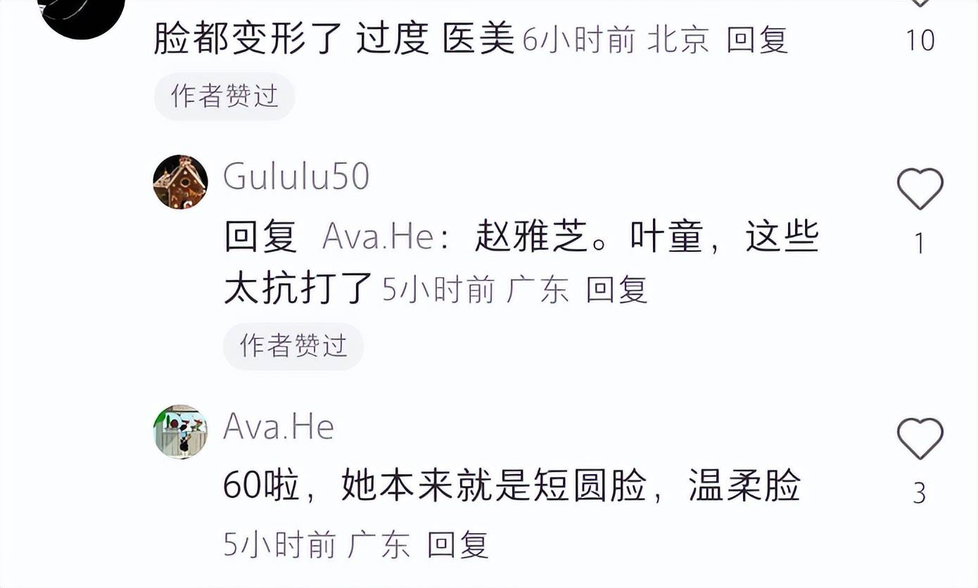 还有网友则挑刺起了谢玲玲的脸,怀疑她是医美过度,还拿她拉踩其他同年龄段的女明星赵雅芝、叶童。