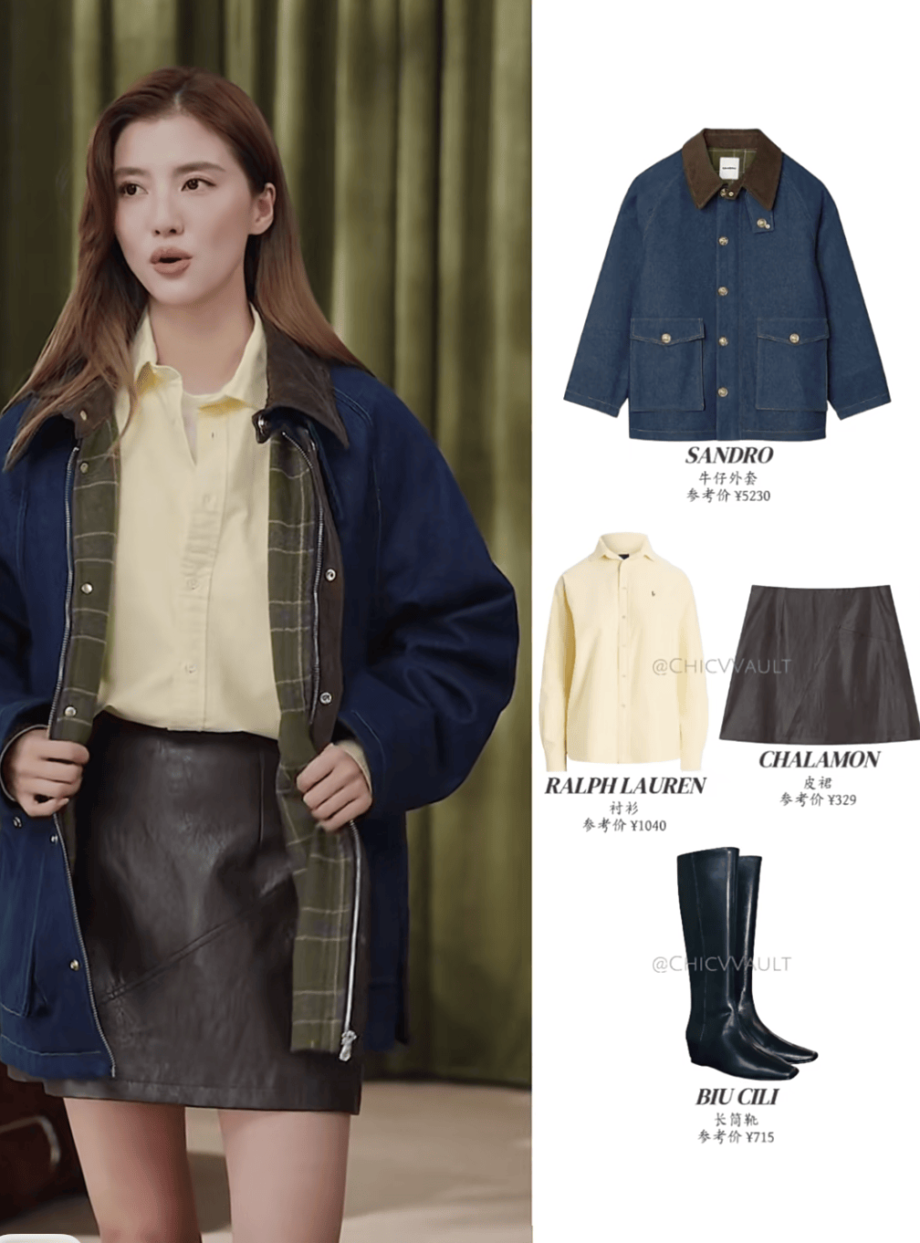 介绍一件价格超过5000元的牛仔外套时,她说虽然单价贵,但这件衣服用了英伦绿格子的内里、精致贵气的金属扣子,低调又不失精致。
