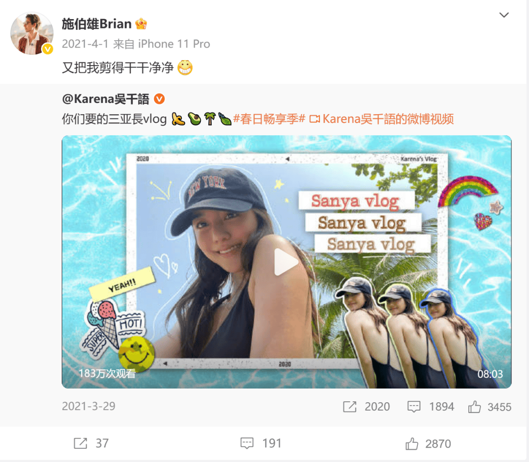 他在微博中称呼吴千语为吴总,在评论里对网友说“她教会我太多事了”,还抱怨女方总在vlog里刻意隐去他的痕迹。