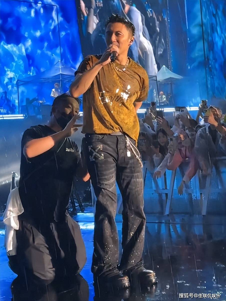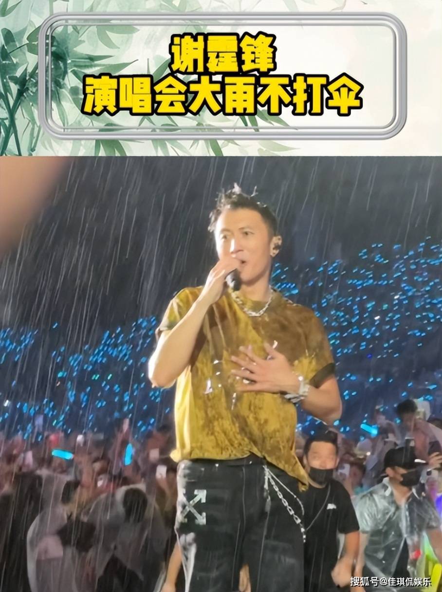 但谢霆锋就跟没事儿人一样,全程没撑伞,也没中断演出。