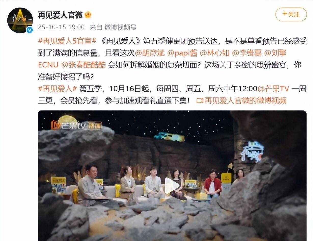 节目从10月16日开始,每周四、五、六中午12点在芒果TV更新,这种一周三更的频率摆明了是要抢占话题热度。