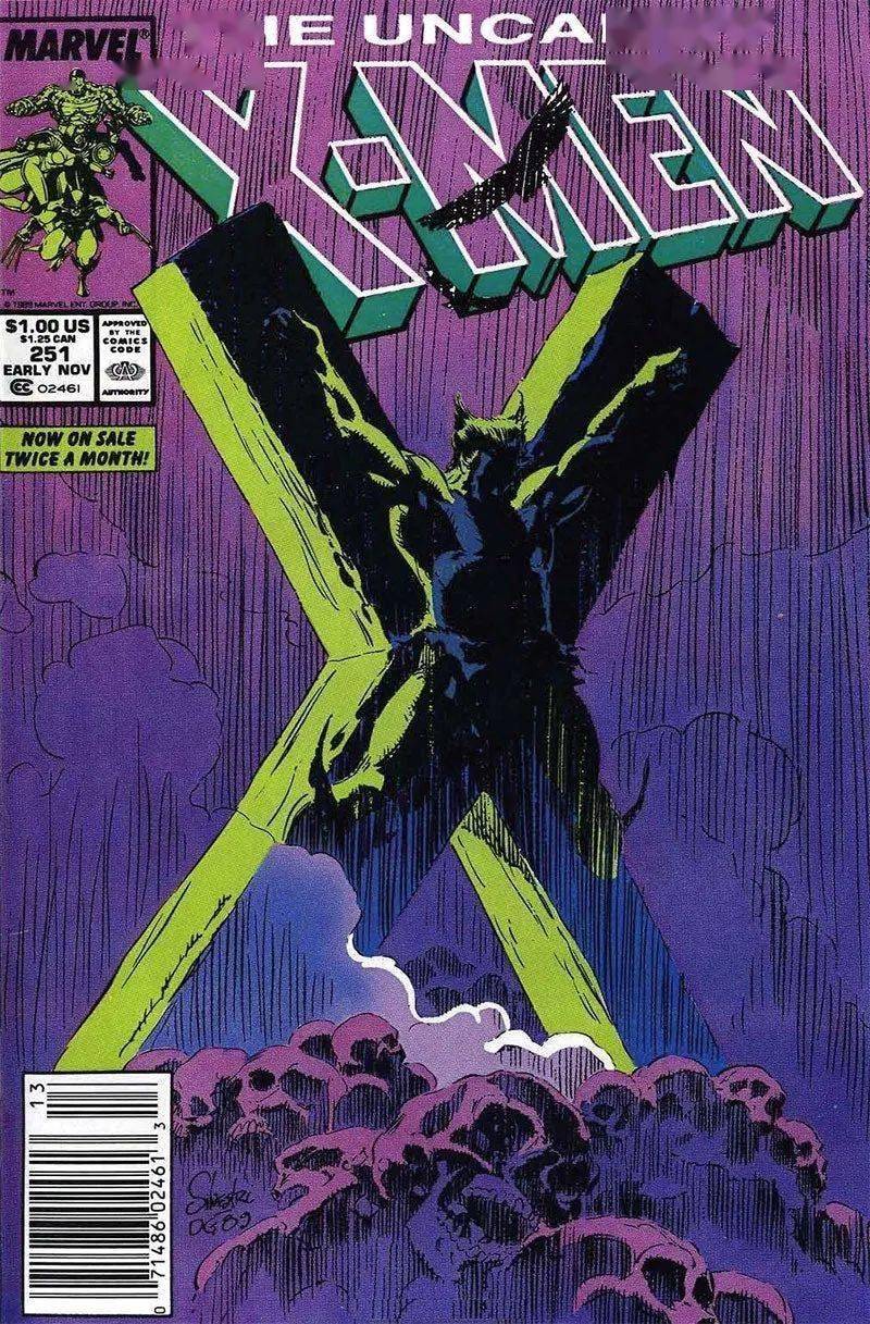 片中有个在无数骷髅之上,被钉在了十字架上的金刚狼,来自1989年一期《非凡X战警》(Uncanny X-Men)的漫画封面。