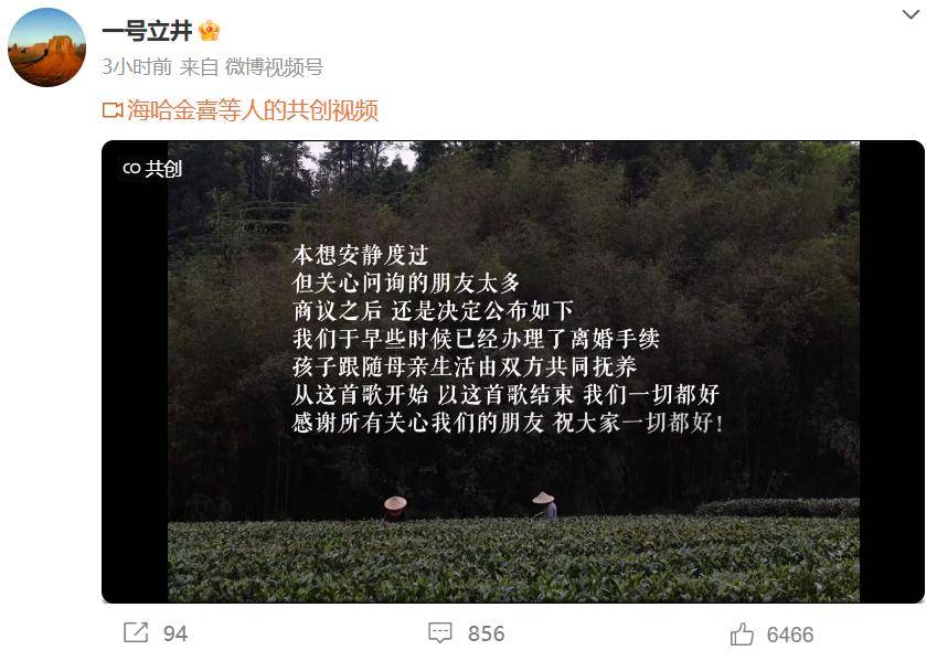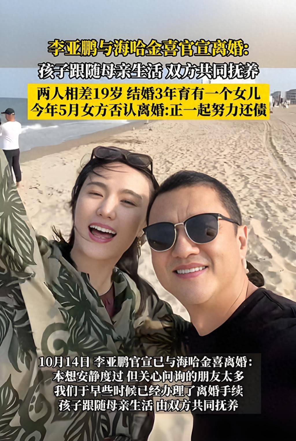 2025年10月14日,李亚鹏在新浪微博“一号立井”官宣与海哈金喜离婚。
