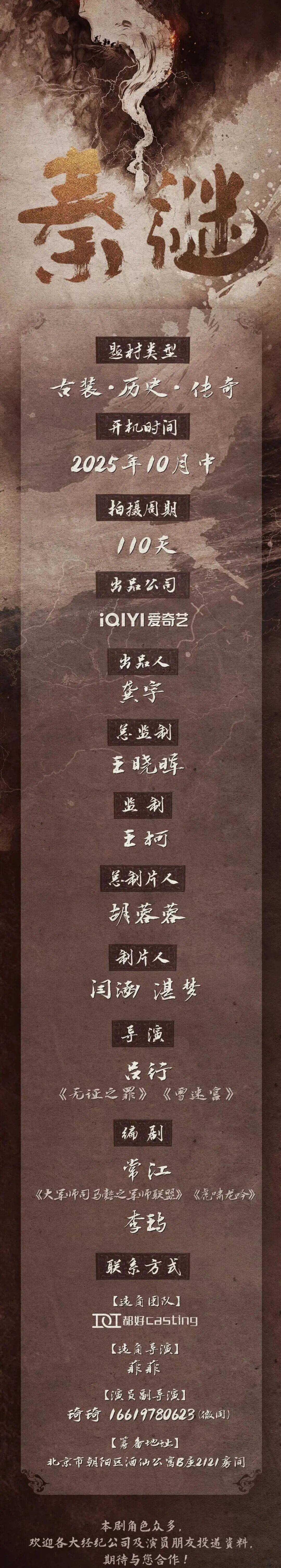 剧中多个角色未定,欢迎各大经纪公司及演员朋友投递资料,期待与您合作。