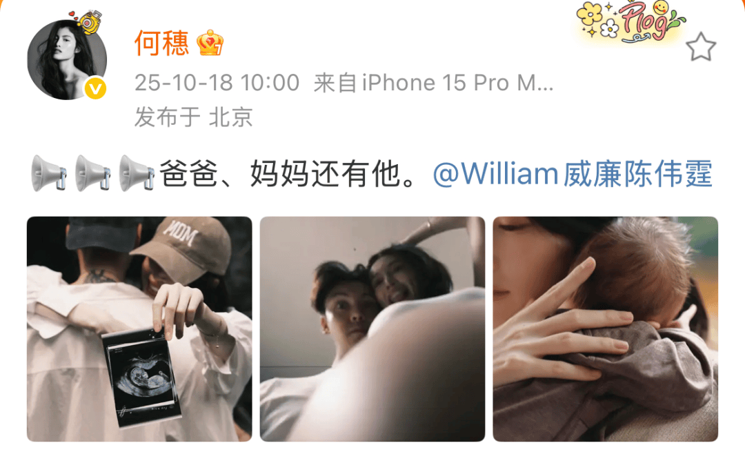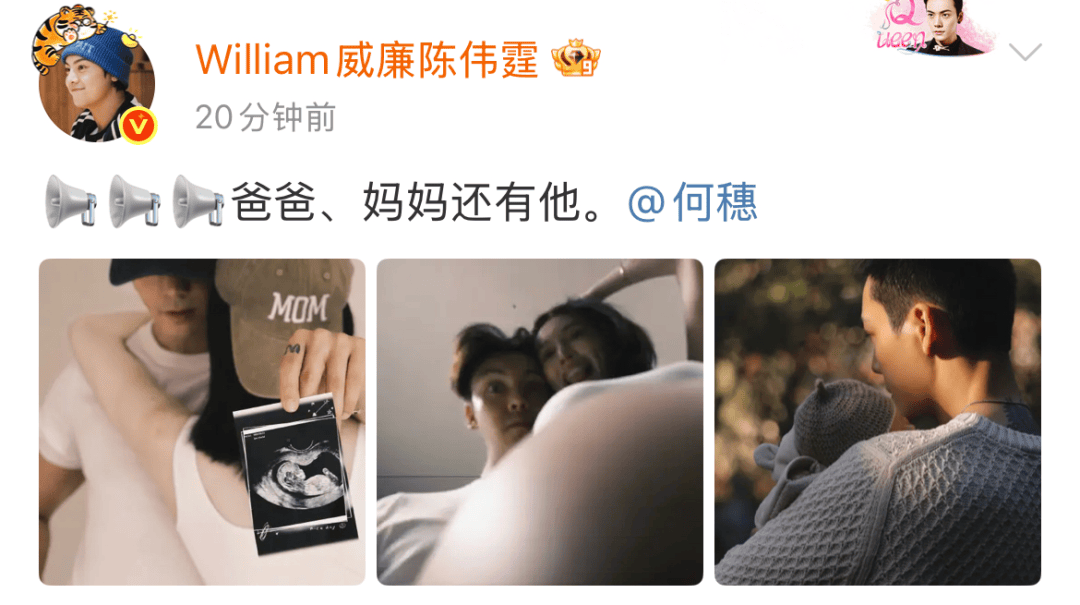 刚刚,何穗、陈伟霆发布微博,官宣生子。