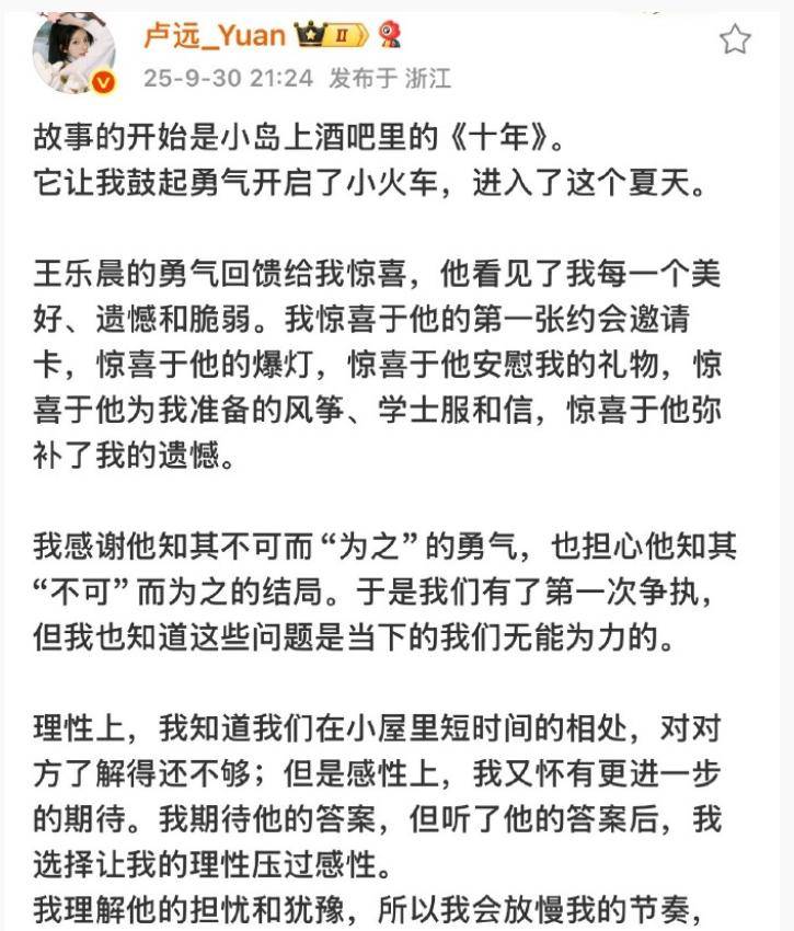 那个在镜头前把校徽当定情信物的高光时刻,不过是场精准的情感狙击。王乐晨这类"情场猎手"最擅长的,就是用学历崇拜作为诱饵,等猎物的神秘感消退便兴趣骤减。当卢远卸下防备展现脆弱时,对方眼里的星光瞬间变成了不耐的皱眉。这种"解谜式恋爱套路":攻克前殷勤备至,得手后索然无味——本质上就是把女生当成就奖杯,集邮完就放进陈列柜吃灰。