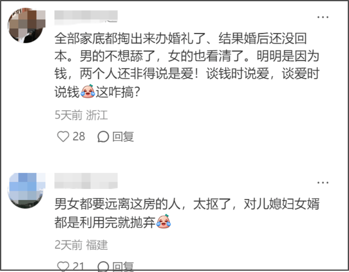 还有网友觉得赌王三房太抠门了,对儿媳妇和女婿都利用完就抛弃,窦骁已经做的很好,婚礼都是他全包,结果婚后天天防着他,普通人对关系利益复杂的豪门还是敬而远之吧。