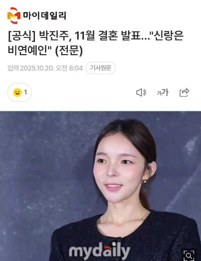 搜狐娱乐讯 20日,演员朴真珠官宣将于11月30日结婚,丈夫为素人,婚礼采取非公开形式。据悉,朴真珠曾出演过《阳光姐妹淘》《当你沉睡时》《德鲁纳酒店》《那年我们》等众多影视剧。