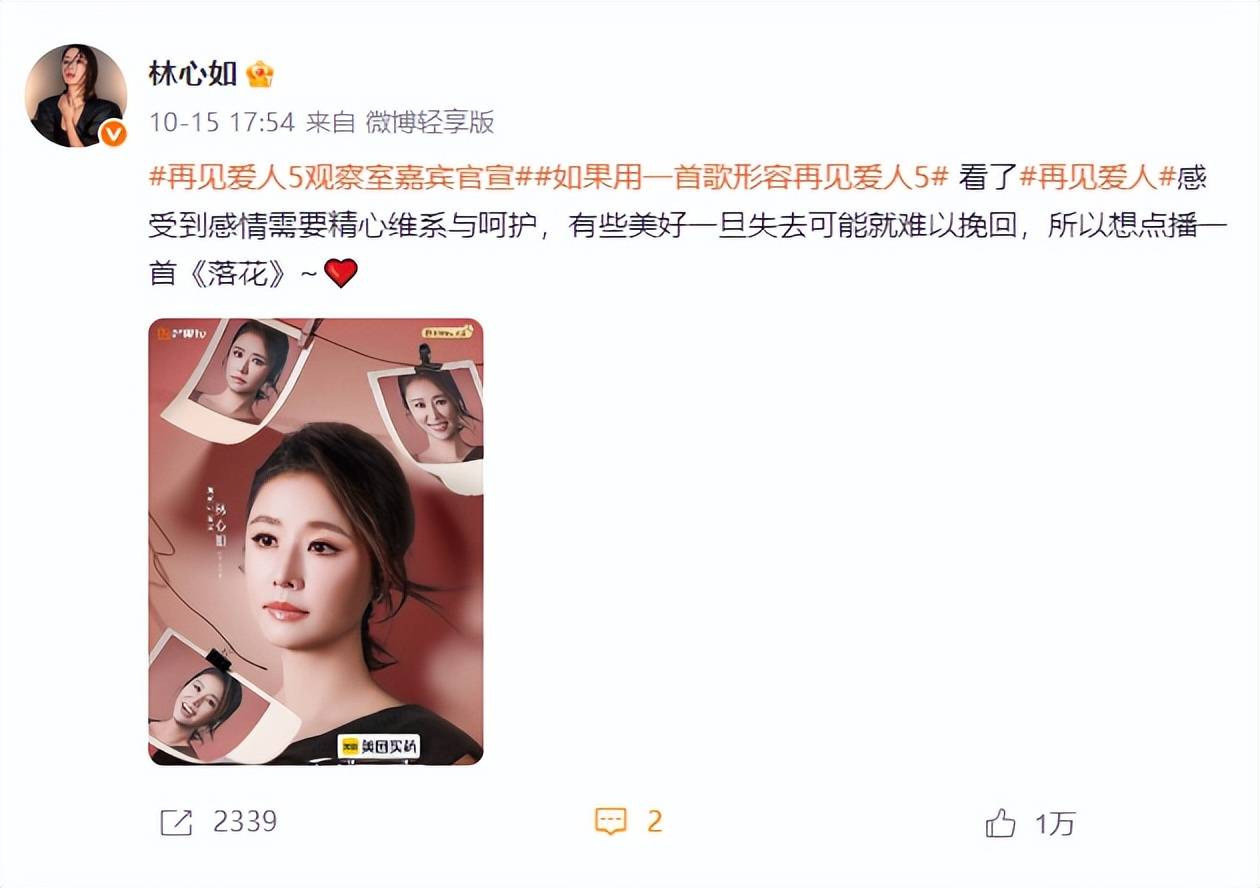 林心如在微博上公开表示:“感情需要双方精心维系和呵护,有些美好一旦失去,就再也无法挽回。”她还透露,近年来她几乎没有参加任何综艺活动,这次出现在节目中的决定,也是为了通过观察他人的婚姻问题来反思自己当前的婚姻状况。她强调,通过这个过程,她希望能够避免自己在面对婚姻中的难题时,采取过激的行为,导致不可挽回的裂痕。