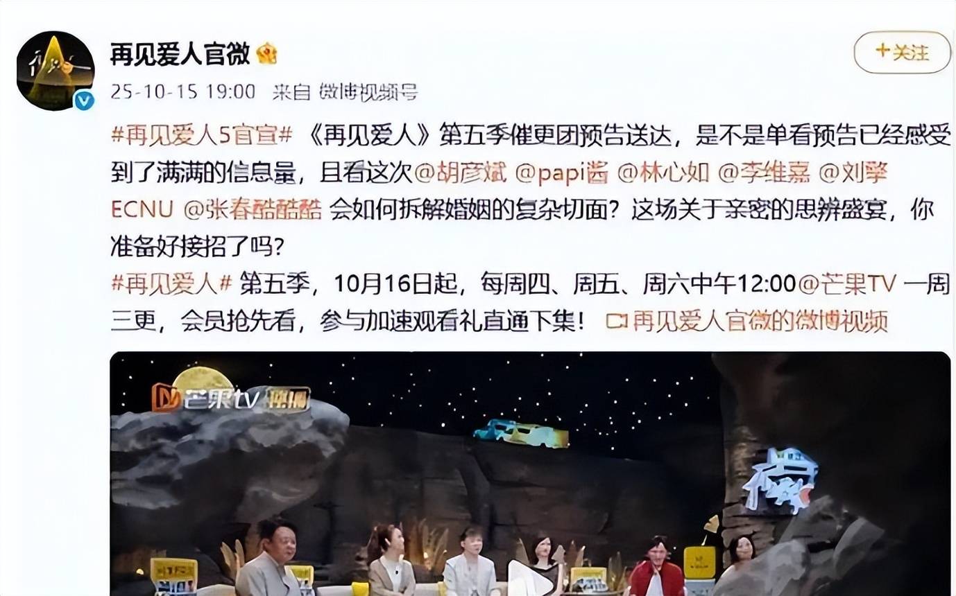 10月15日,《再见爱人》通过社交平台发布了开播预告,正式宣布新一季的来临。令人惊讶的是,林心如将成为这季节目的主角之一。节目官方声明中提到,节目将探讨“如何拆散婚姻的复杂切面”,这一点无疑让观众更加期待。