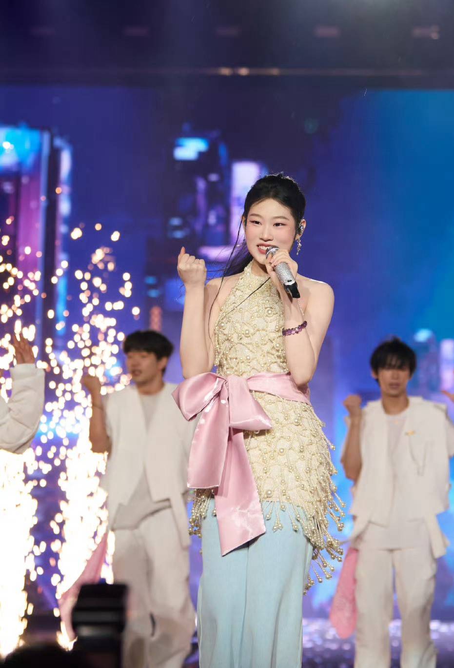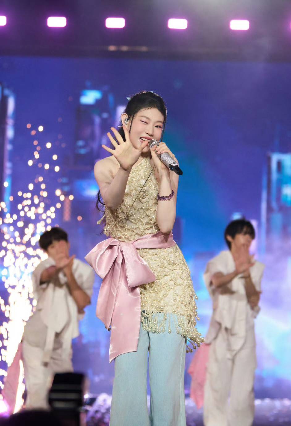 搜狐娱乐讯 近日,沈佳润在社交平台分享一组舞台照,图中,她穿着亮片上衣搭配牛仔裤,表情灵动,舞台感染力好强。