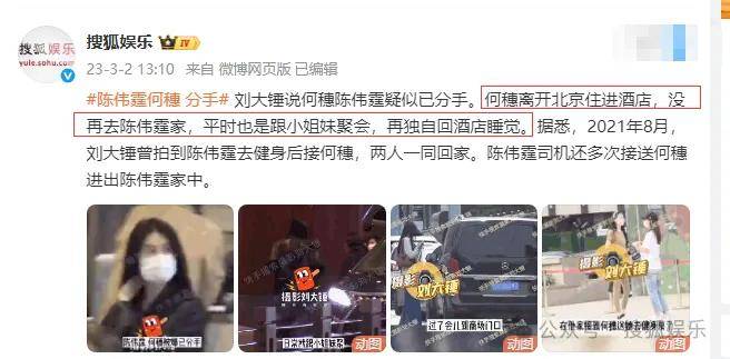 只是,到了2023年初,有狗仔爆料说何穗和陈伟霆分手了,他们发现何穗来北京没住陈伟霆家,而是独自回酒店睡觉,出来玩也是找姐妹聚会,很久没看到陈伟霆出现在她身边了。