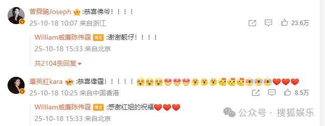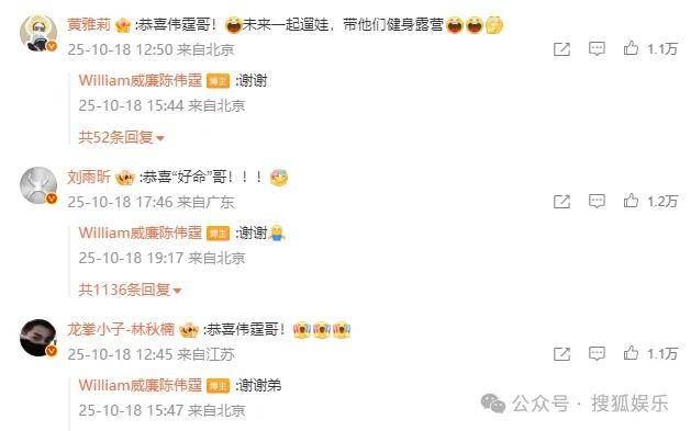 很久没有看到明星们纷纷贺喜了,2025年总算在陈伟霆评论区看到大家团建。