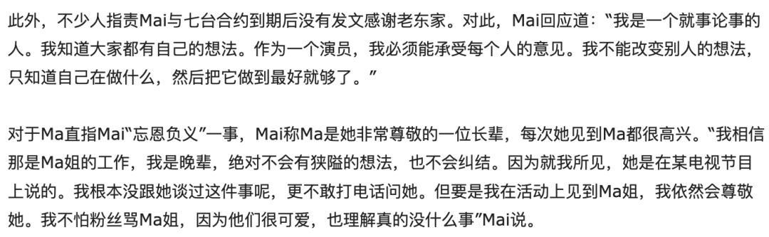 两年后,Mai又和7台解了约,很多人骂她忘恩负义