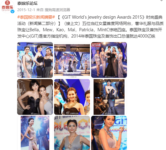 一扒就发现是2015年,Mai,MintC,Mew三姐妹和Bella都出席的某珠宝走秀活动。