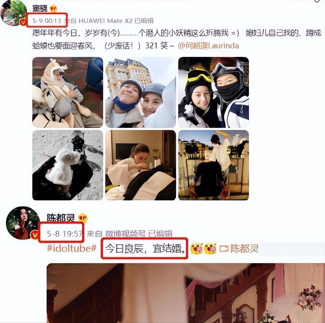 首先社交账号里两人甜蜜的合照很多,两人一起合拍的视频也不少。