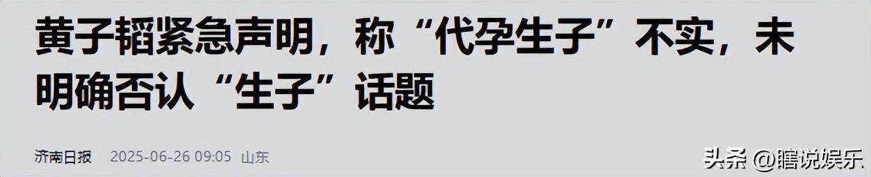 直至今年6月25日,黄子韬和徐艺洋工作室发布声明,否认代孕生子,舆论这才慢慢消散。