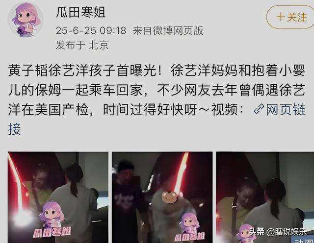 而在今年黄子韬和徐艺洋未结婚之前,就有八卦媒体拍到徐艺洋妈妈抱着婴儿的视频。