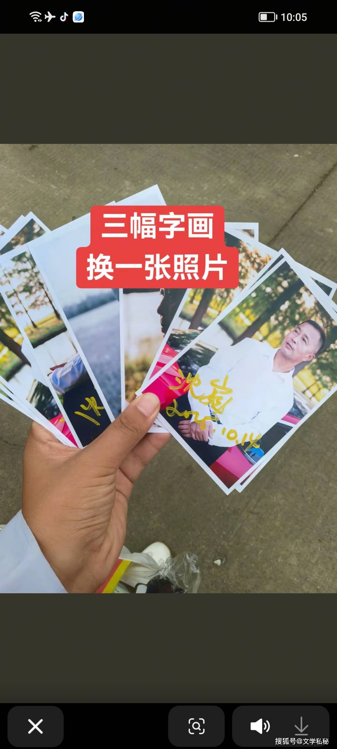 很快这些照片,便在麦子那里进入商业途径,她发出视频,公示购买三张沈巍的字画作品,可以换到一张沈巍签名的照片。