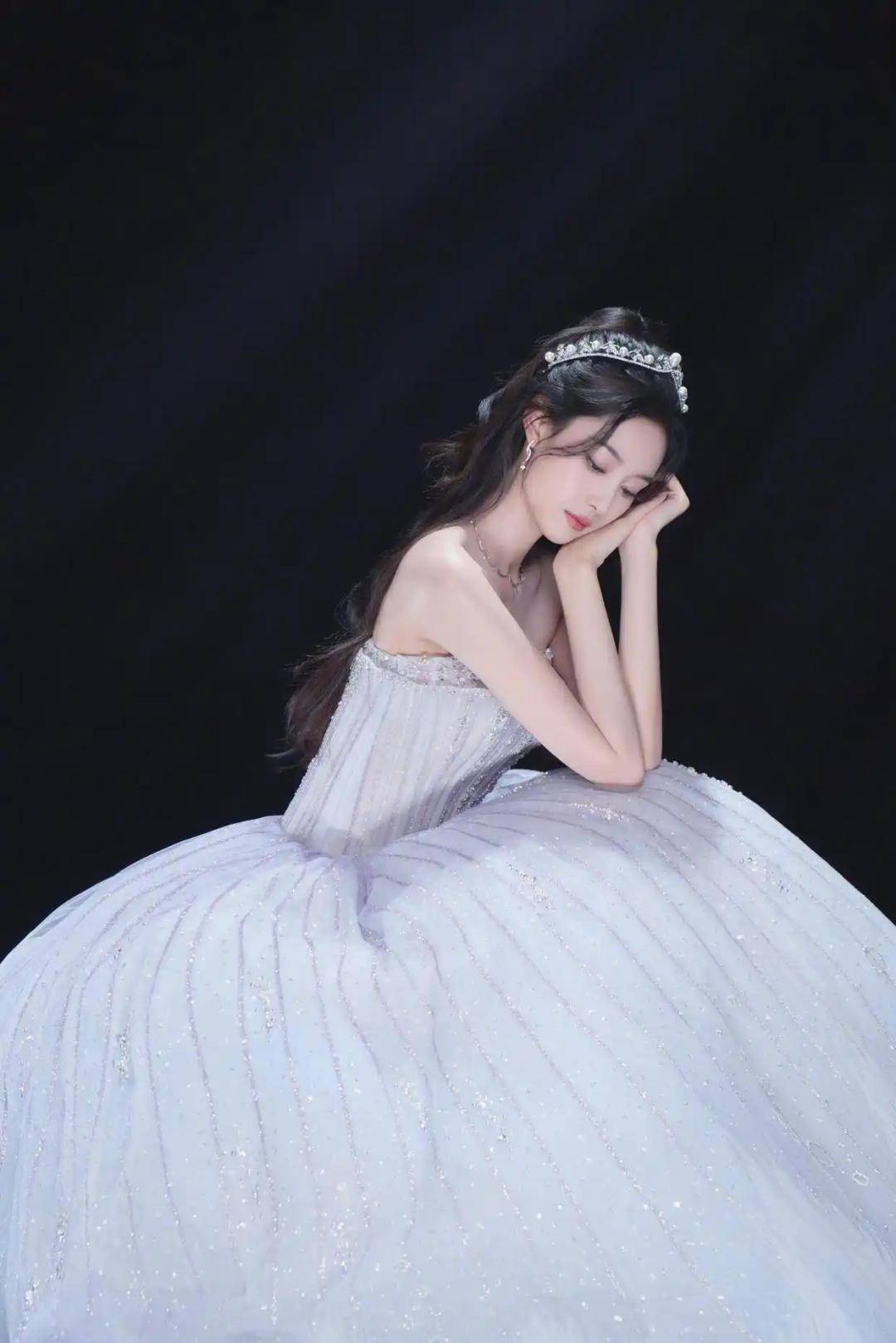 徐艺洋换了三套造型:粉色露肩裙配鲜花辫子,白色婚纱捧花显温柔,还有镶钻裹胸婚纱搭珍珠发饰,每套都美得各有特色。