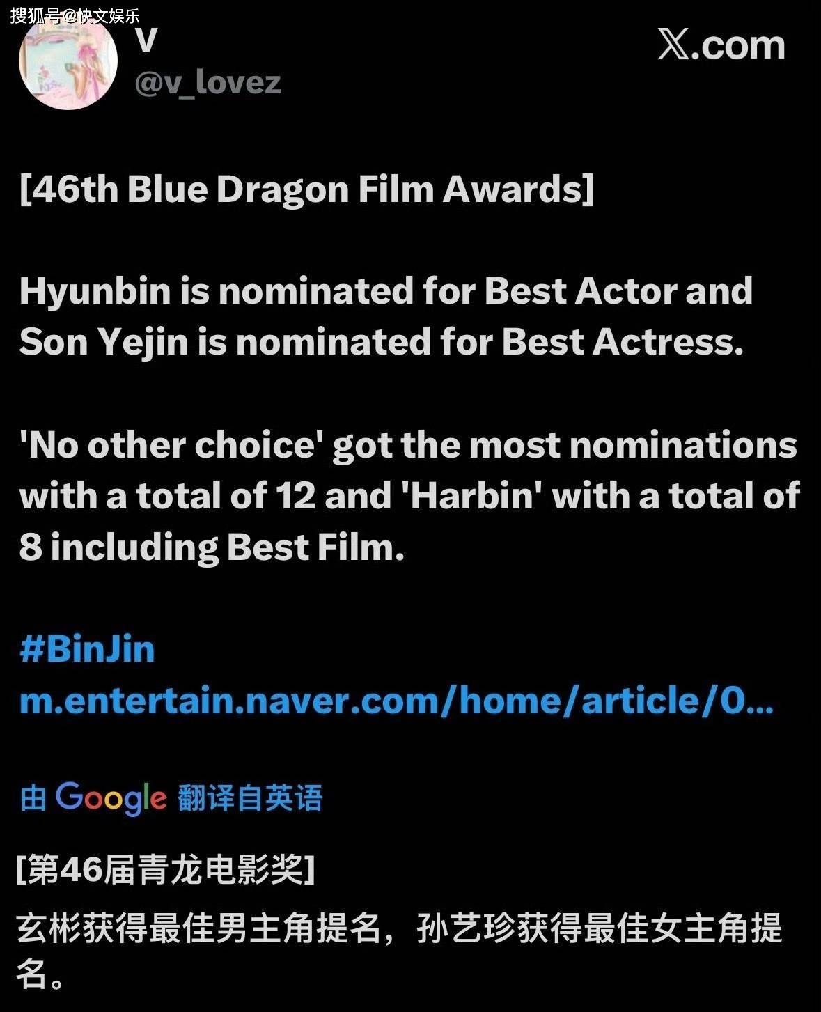 2023年韩国影视圈最令人艳羡的夫妻档非孙艺珍与玄彬莫属。这对顶流夫妇近日同时获得青龙奖影帝影后提名——玄彬凭犯罪片《哈尔滨》角逐最佳男主角,孙艺珍则以治愈系电影《三十九》入围最佳女主角。从荧幕情侣到现实夫妻,再到事业齐头并进,他们的故事堪称娱乐圈"人生赢家"的完美范本。