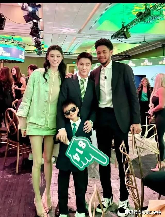何猷君在lns上晒出了一家三口与凯尔特人球员A-西蒙斯的合影,配文:三叶草基金会揭幕,晚宴气氛热烈!凯尔特人加油!众所周知,何猷君是凯尔特人老板之一。