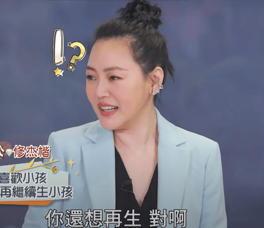 连小S都看不下去,一脸震惊向修杰楷确认是不是真的想让贾静雯生四胎,修杰楷开口就回了一句“对啊”。