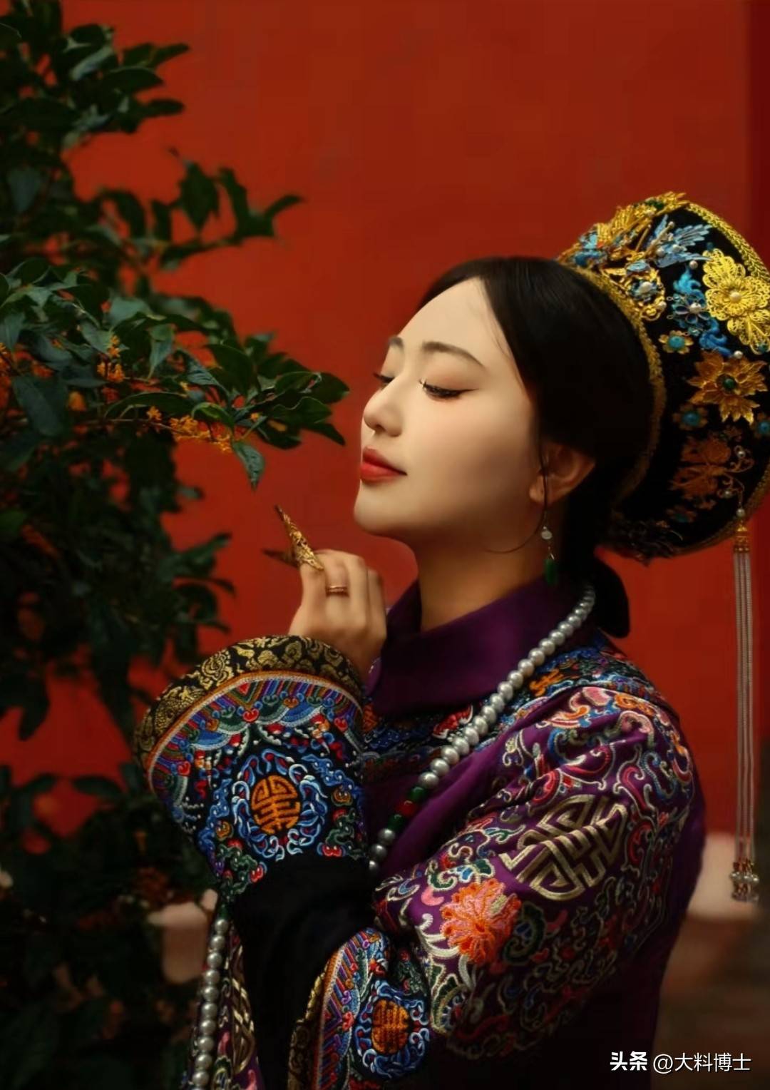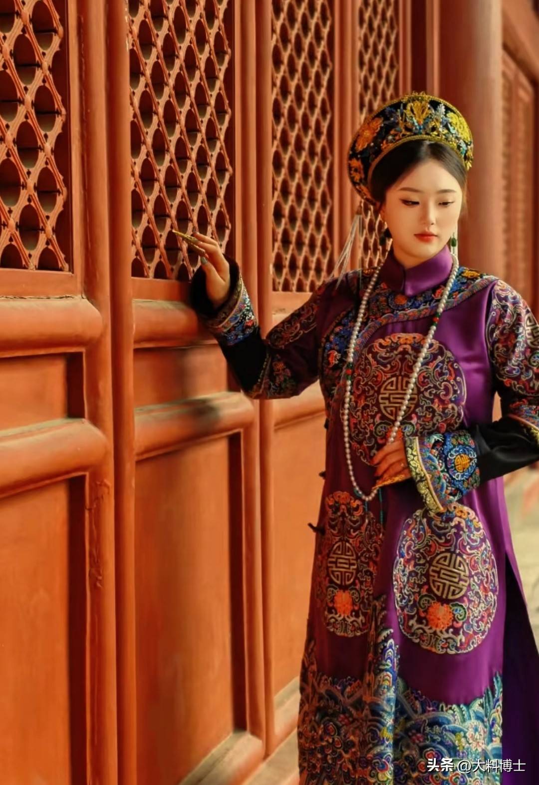 二表妹选了一身紫色的古装,王媛可指导她在廊下红色木门前拍照,她似乎提取了自己当年演纯妃的专业演技,给二表妹示范如何轻抚木门、低眉浅笑。