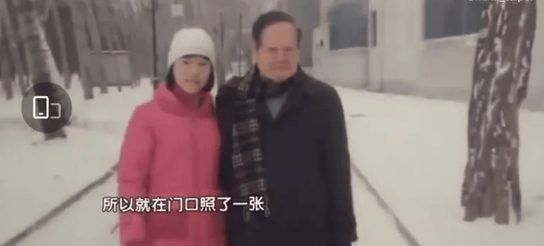 鹅毛大雪,让夫妻两人觉得特别美好,于是穿衣出门,合影一张。