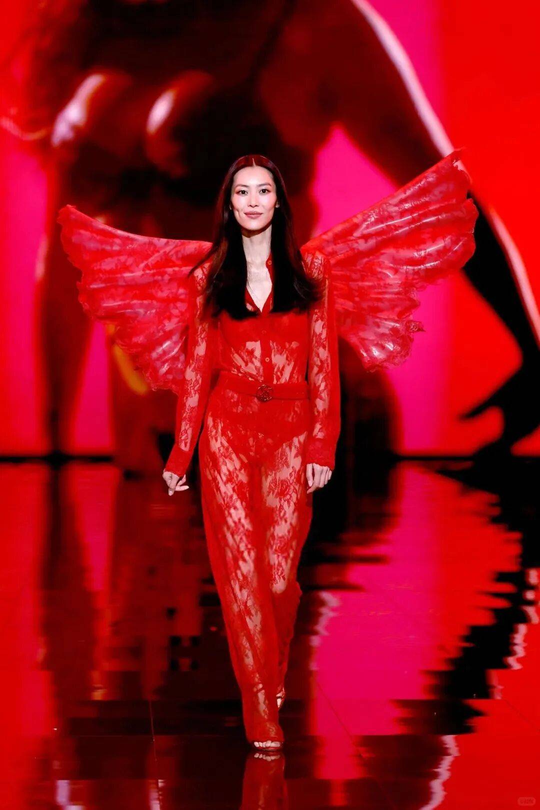 第九次登上维密舞台的刘雯不仅刷新了亚洲模特登台纪录,更以两套全新造型惊艳亮相:雪花女神Look飘逸冷冽,全红裤装造型飒爽热烈,第六次佩戴天使翅膀登场,美出新高度。