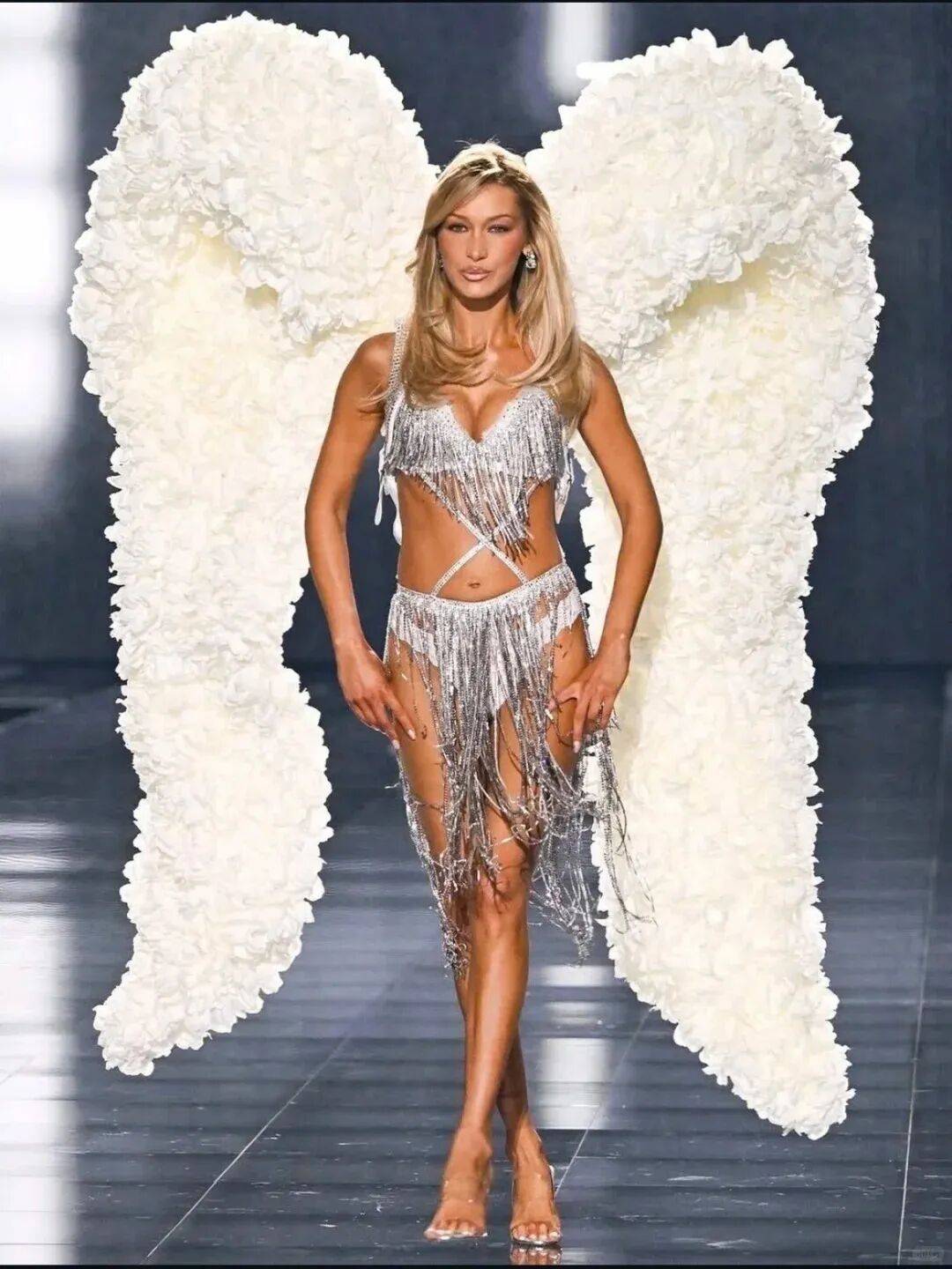这次维密大秀也迎来首位职业运动员的加盟,00后美国职业篮球运动员Angel Reese首次走秀就佩戴了维密翅膀,首次让“运动员”身份披上天使羽翼,把“女性力量”从口号写进视觉。
