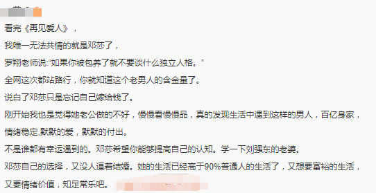 基于以上猜测,甚至有人觉得邓莎“多少有点不识好歹”,吐槽她“到底能不能过得明白”、“过不明白让我来”、“再看下去我都要爱上他了”……