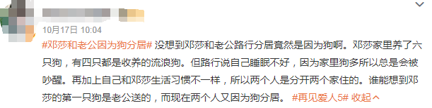 这件事直接导致夫妻俩开始了长期“半分居”的生活,甚至影响到了他们平时聊天,俩人都会给对方分享短视频,但邓莎发的主打一个小狗可爱、萌宠暖心,路行发的则是养狗隐患、恶犬伤人,双方都对彼此已读不回。