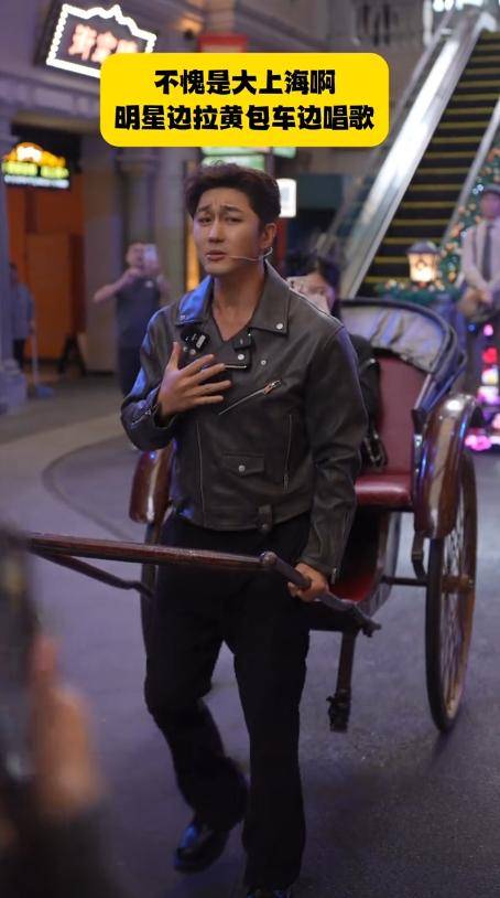 10月18号那天,上海千古情景区搞了个"奇妙夜"活动,史元庭穿着皮夹克,戴着圆框墨镜,在老上海街景里来回穿梭。