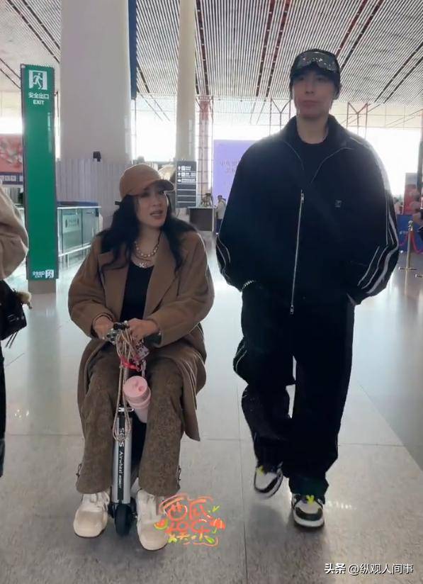 因为年纪大了,所以就在机场里骑着一个电动行李箱赶路,整个人就是一个大木桩,完全不像以前赶行程时那样有活力。