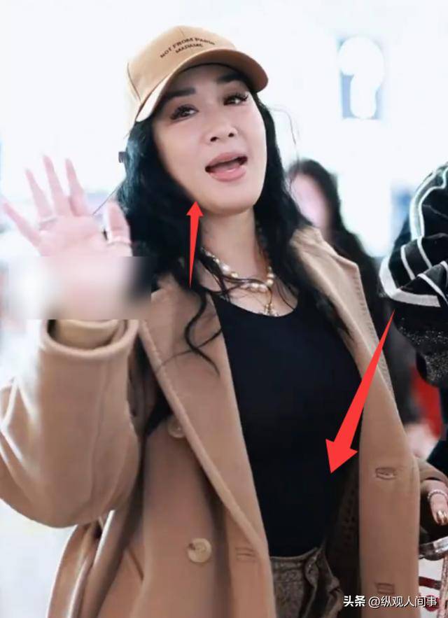 可才过一年,这次机场照里,她的脸圆了一圈,下颌线模糊,大衣裹着显得肩背宽厚,豹纹裤更是放大了身材缺点。