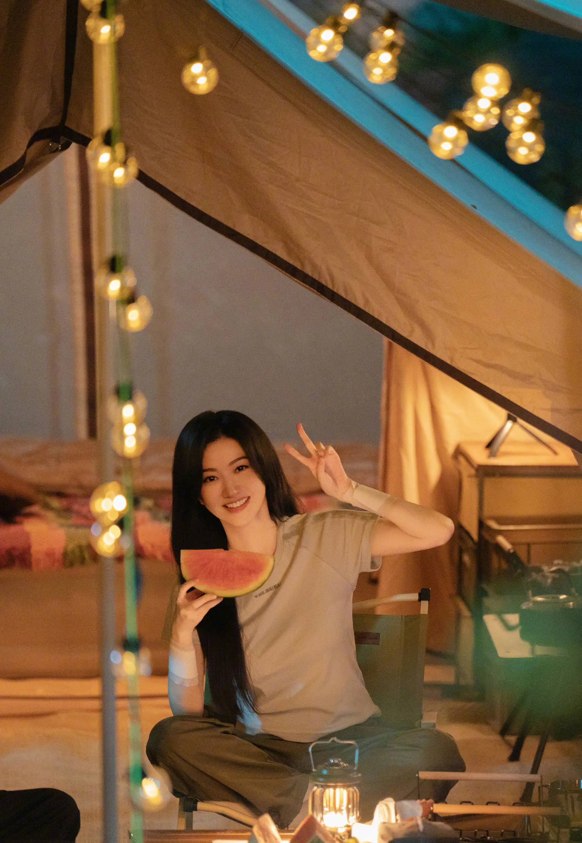 搜狐娱乐讯 22日,景甜在社交平台上更新一组露营美照,并配文称:“高能量的一天!”照片中,景甜坐在帐篷旁吃西瓜比耶拍照,元气满满,少女感十足。